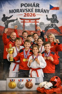 V sobotu se v Hranicích (ZŠ Drahotuše) uskutečnil tradiční turnaj Pohár Moravské brány 2026, kterého se zúčastnily kluby z celé Moravy i dalších regionů. Závodníci soutěžili v disciplínách kata, kihon kumite, sanbon kumite a volné kumite napříč věkovými kategoriemi od nejmladších žáků až po seniory.